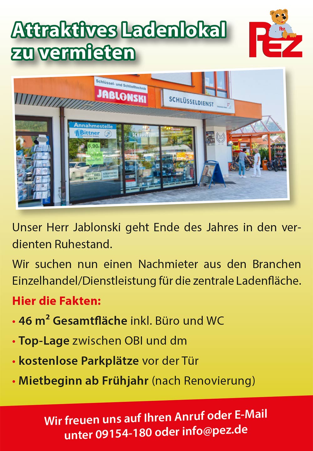 Jablonski geht in den verdienten Ruhestand. Anfragen gerne über info@pez.de