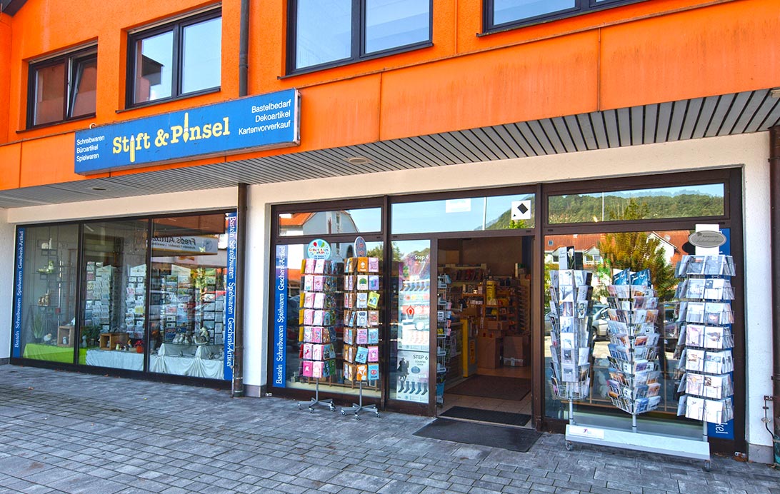 Zwischen Obi-Markt und Dän. Bettenlager befindet sich seit dem 20. November 2006 das Schreibwaren-Fachgeschäft „Stift und Pinsel“. Wir führen Marken wie Städtler, Faber-Castell, Parker, Edding u.v.m. sowie Schulhefte, Papiere und Geschäftsbücher u.a. von Staufen, Oxford, Folia, Artoz, Leitz und Sigel.